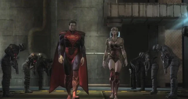 Batman's face says it all. Superman, finally fed up with the — wait for it — INJUSTICE in the world, plows his hand through the Joker's chest, killing him as he laughs himself to an eternal sleep. At this point, Superman decides that it is time for him to establish his own government, because following the laws of the land no longer works for him. The Joker can't just keep going to prison only to escape or be freed; it has to end, and this is true not only for the Joker, but for all villains. The law isn't good enough. Superman takes over, which leads to a divide amongst the superhero populace, forcing them to pick sides. A very notable aspect of Superman's new government?