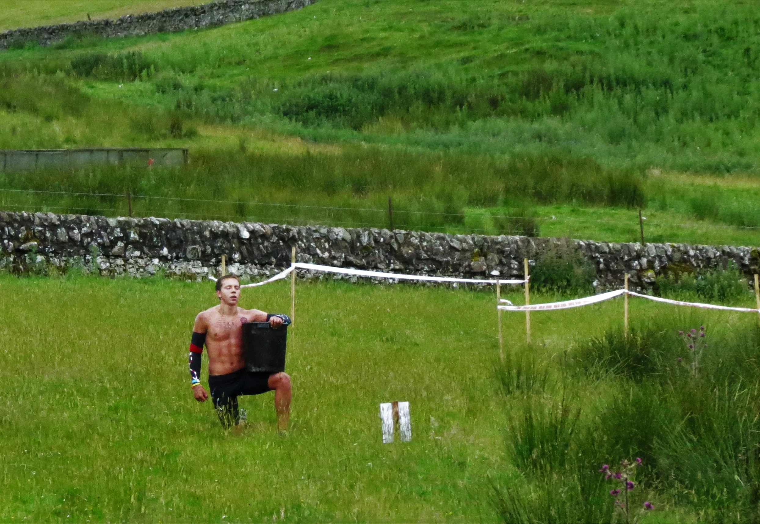 After continuing downhill back towards the festival area, we made a sudden right turn and were deposited into the Bucket Brigade (yep, you know where this is going). I noted that the buckets here in Europe were both taller in height and wider in diameter – as one racer would note, it was more of a “trash can carry” than a bucket carry – but having filled my trash can up, I set on my way, my mouth falling open as I saw the sheer size of the loop we would have to carry.
