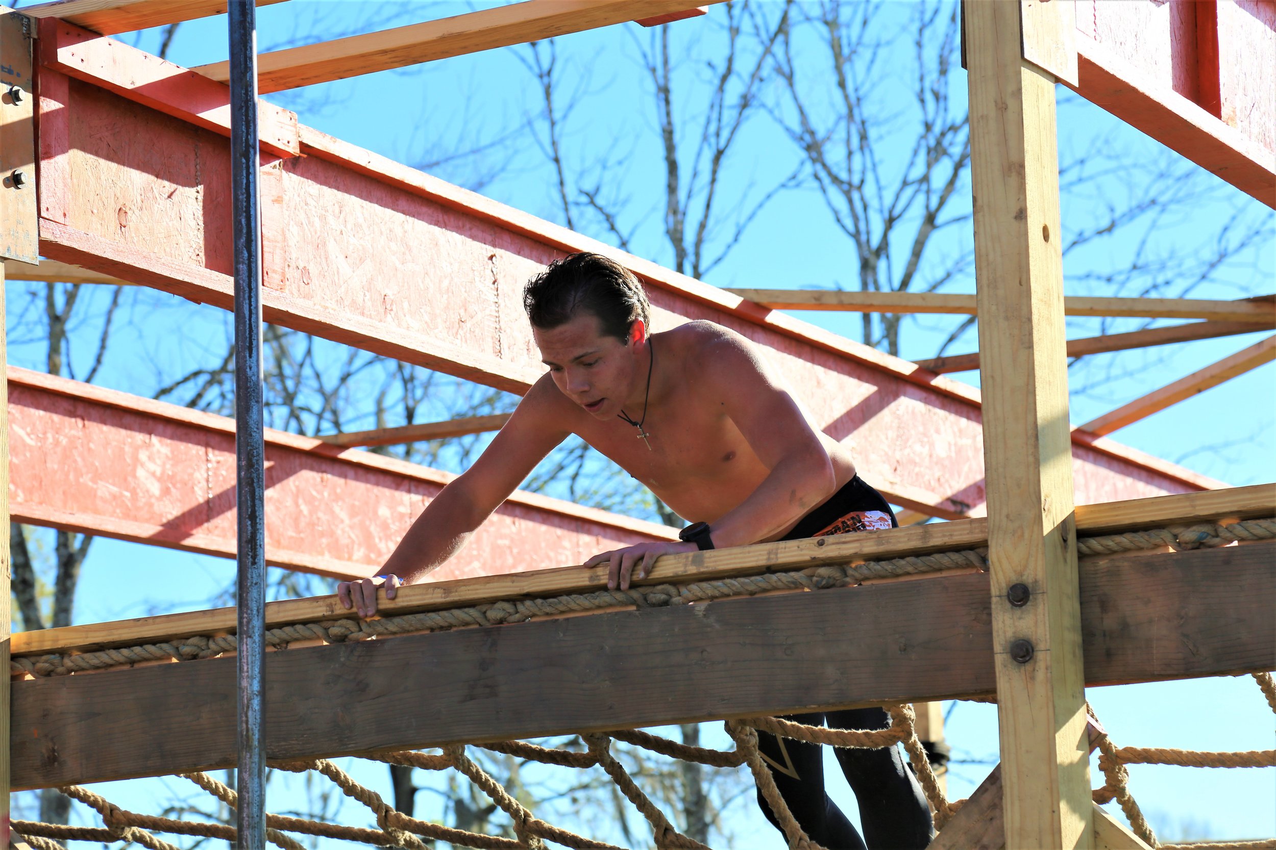 Turns out it was just going to be a short race. I rounded the corner and approached the final obstacle, a balance beam leading up to a cargo net we would have to crawl across before sliding down a fireman’s pole on the other side. I embraced another moment of ungraciousness as I landed face first on the cargo net upon dismounting the balance beam, each of my limbs falling clumsily into the parting holes so that I had to awkwardly clamber out of it before tootsie-rolling my way across the net so as to slide down the pole and cross the finish line. Boom. Done.