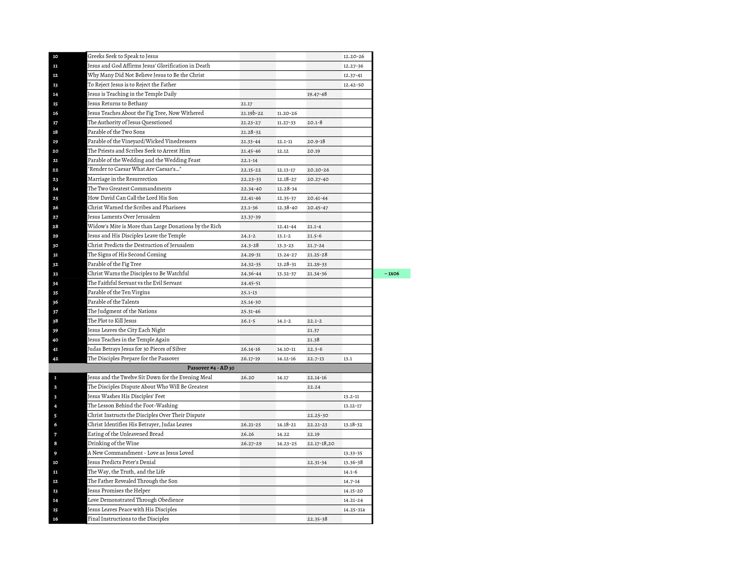 The season 2 finale of the show just aired, and some people have requested access to my Excel spreadsheet which includes the Gospel Harmony I created, which I have been using to track events covered in the show and try to predict what might come in the future. I figured I’d create a post on here so everyone could access it :) Enjoy!